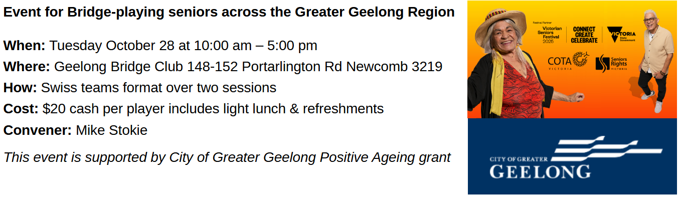 Register: Mike Stokie or website calendar or club noticeboard